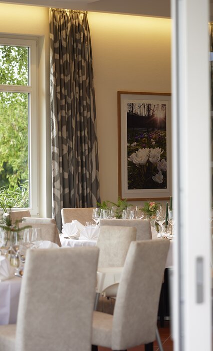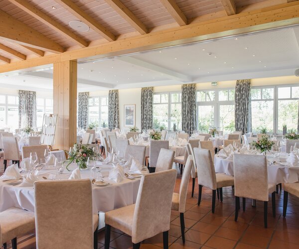 Die Bestuhlung gestalten wir individuell nach Ihren Wünschen – ob festliche Tafeln, runde Tische, Stehempfang oder Reihenbestuhlung.
