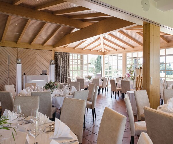 Im Café - Restaurant Sonnenhöhe stehen Ihnen zwei kombinierbare Festsäle zur Verfügung. Dank flexibler Vario-Wand lassen sich der kleine und der große Saal verbinden und bieten Platz für bis zu 250 Personen oder bis zu 160 Gäste an runden Tischen.